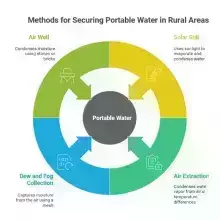 Set up a mesh (plastic) in an open area, especially in mountainous or coastal regions. At night, as temperatures drop, water vapor will condense on the mesh and drip into a container or small pipe below.4- Air well to condense moisture