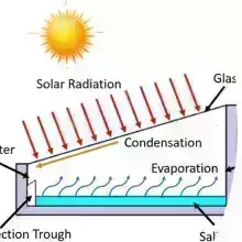 Find any glass or transparent plastic sheet and a box (preferably a wooden box). put the water inside, and place the sheet at a 30–45° angle on top of the box. The sun will evaporate the water, and it will condense on the sheet. The drops will slide down into a small channel and collect in a clean container.