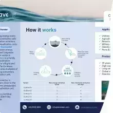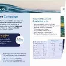 At Exowave, we are excited to to announce the first commercial product range of desalination systems powered from renewable wave energy. Committed to contribute to the combat on global water crisis, Exowave now manufactures the patented ExoMare desalination units addressing the low capacity market segment 4 - 20m3/day freshwater.